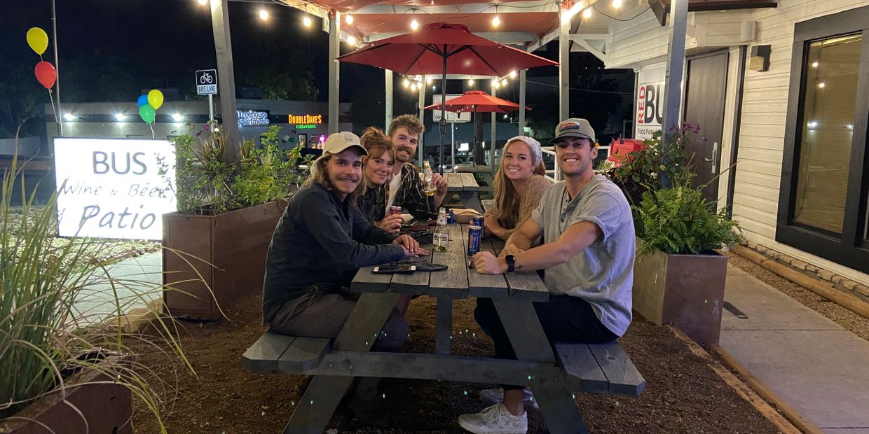 The Front Patio lets you sit and people watch right into campus!